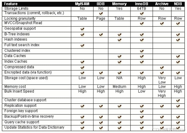 - memory:内存存储引擎,数据存在内存中,速度极快,重启后数据丢失;