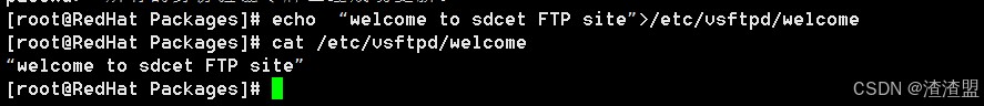[root@localhost ~]#echo “welcome to sdcet ftp site”>/etc/vsftpd/welcome