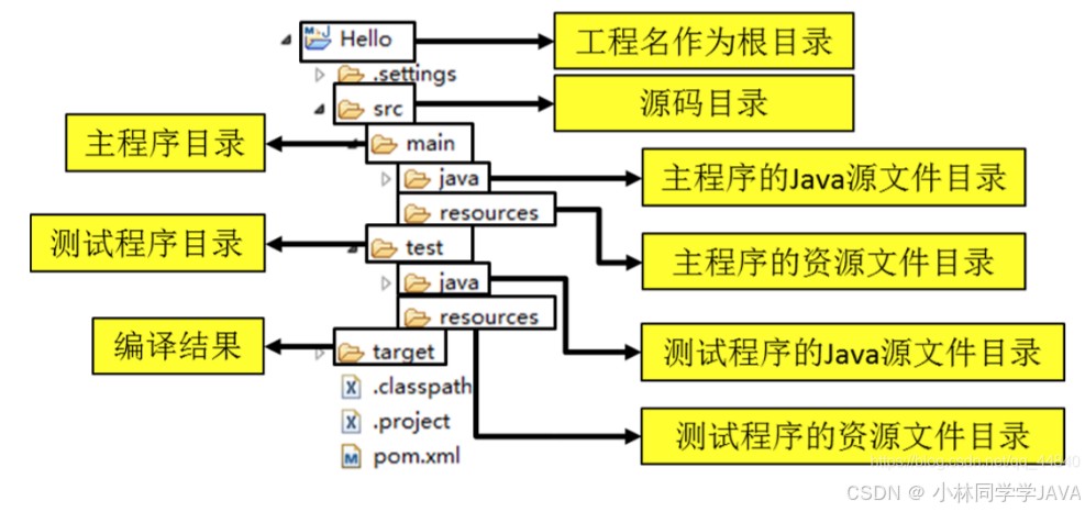 maven 工程有约定的目录结构,约定的目录结构对于 maven 实现自动化构建而言是必不可少的一环,就拿自动编译来说,maven 必须 能找到 java 源文件,下一步才能编译,而编译之后也必须有一个准确的位置保持编译得到的字节码文件。