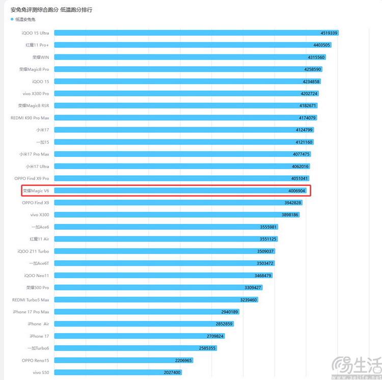 荣耀magic v6在常温和低温跑分榜单中的排名