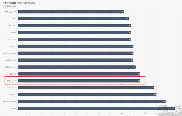 荣耀magic v6在充电时长排行榜里的表现尚可