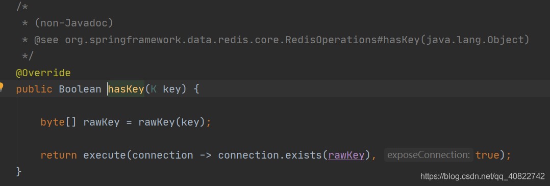 redistemplate或stringredistemplate其他返回包装类型boolean的同理,比如下面这个: