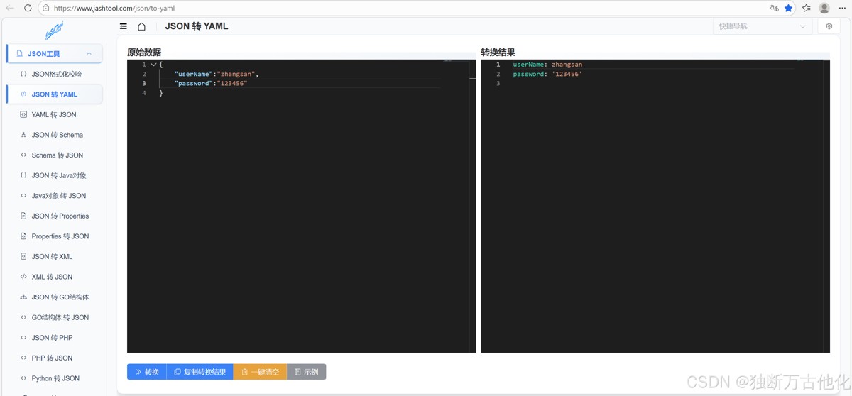 工具地址:https://www.jashtool.com/json/to-yaml
