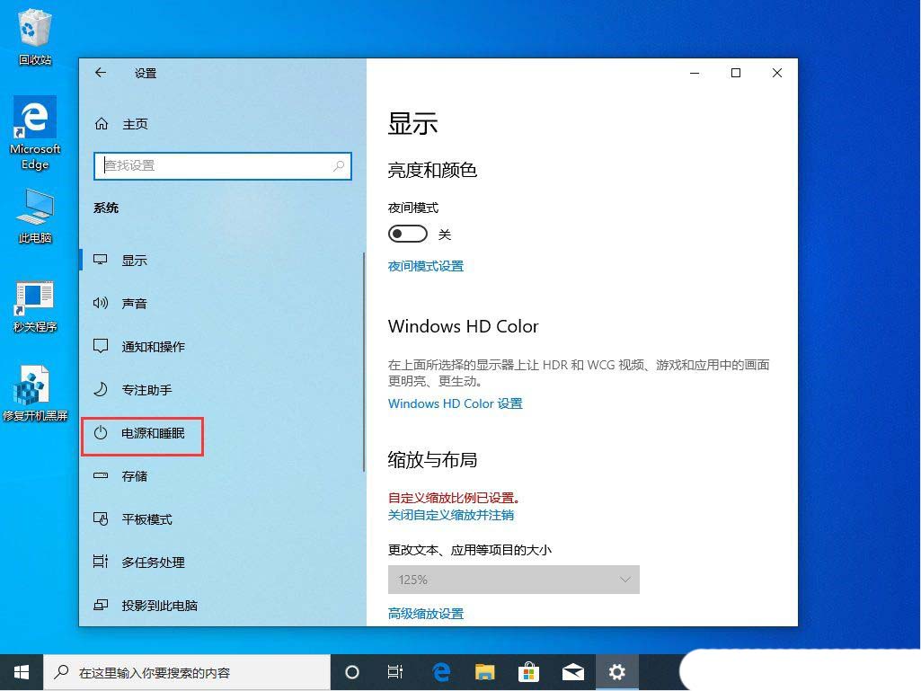 2、系统主页设置窗口中,点击左侧的电源和睡眠;