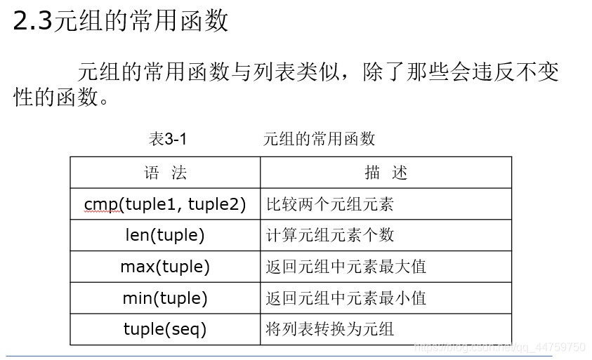 没有任何的操作能更改元组。例如append、extend、insert、remove、pop、reverse和sort不能用于元组。