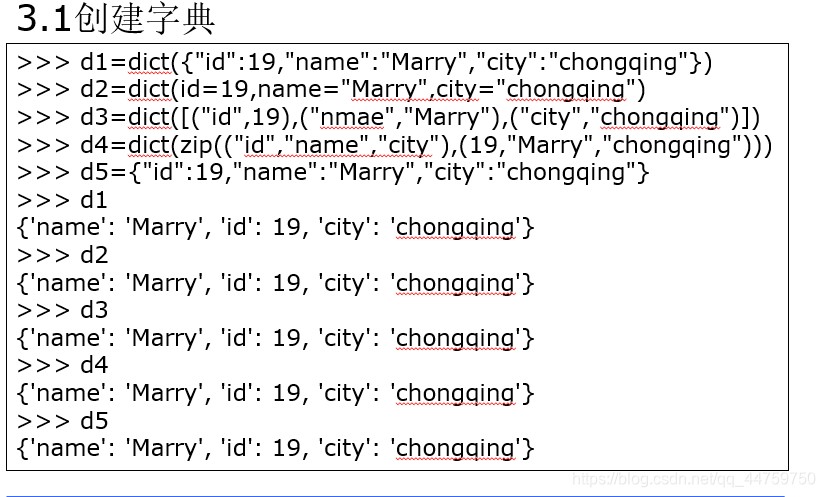 创建字典使用dict方法