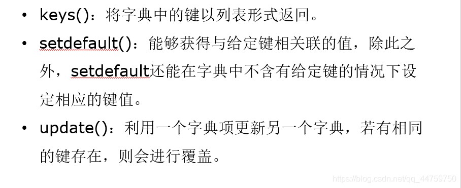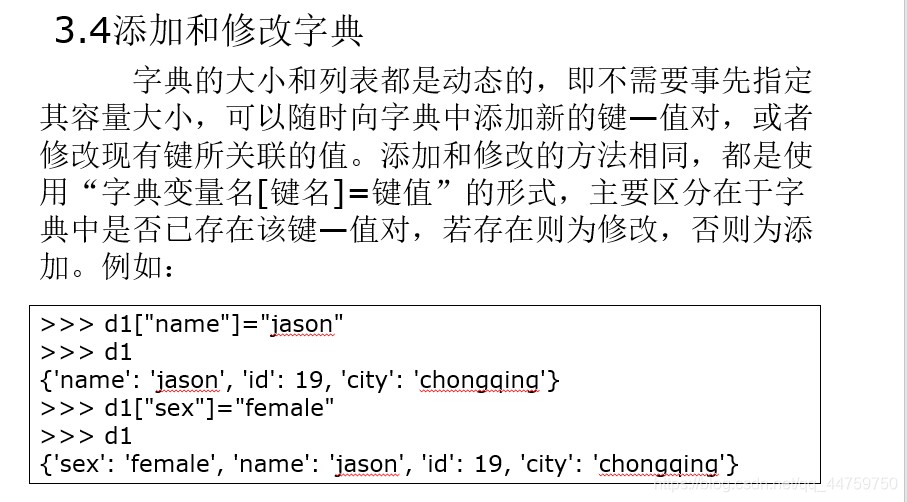 因为字典是无序的,类似于append在尾部添加键—值对的方法是没有任何意义的。