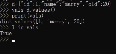 查看一个值是不是出现在字典中,可以使用方法values,它返回改字典的所有值的一个集合,然后检索当前值是否在集合中即可。
