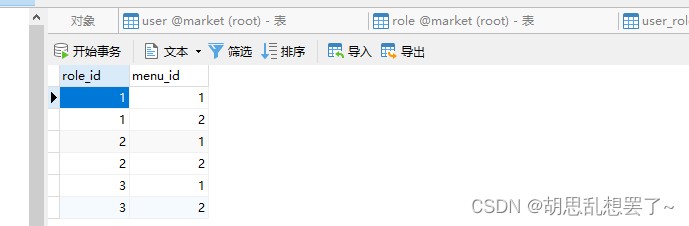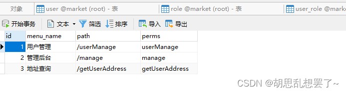 用户、角色、权限表信息如下