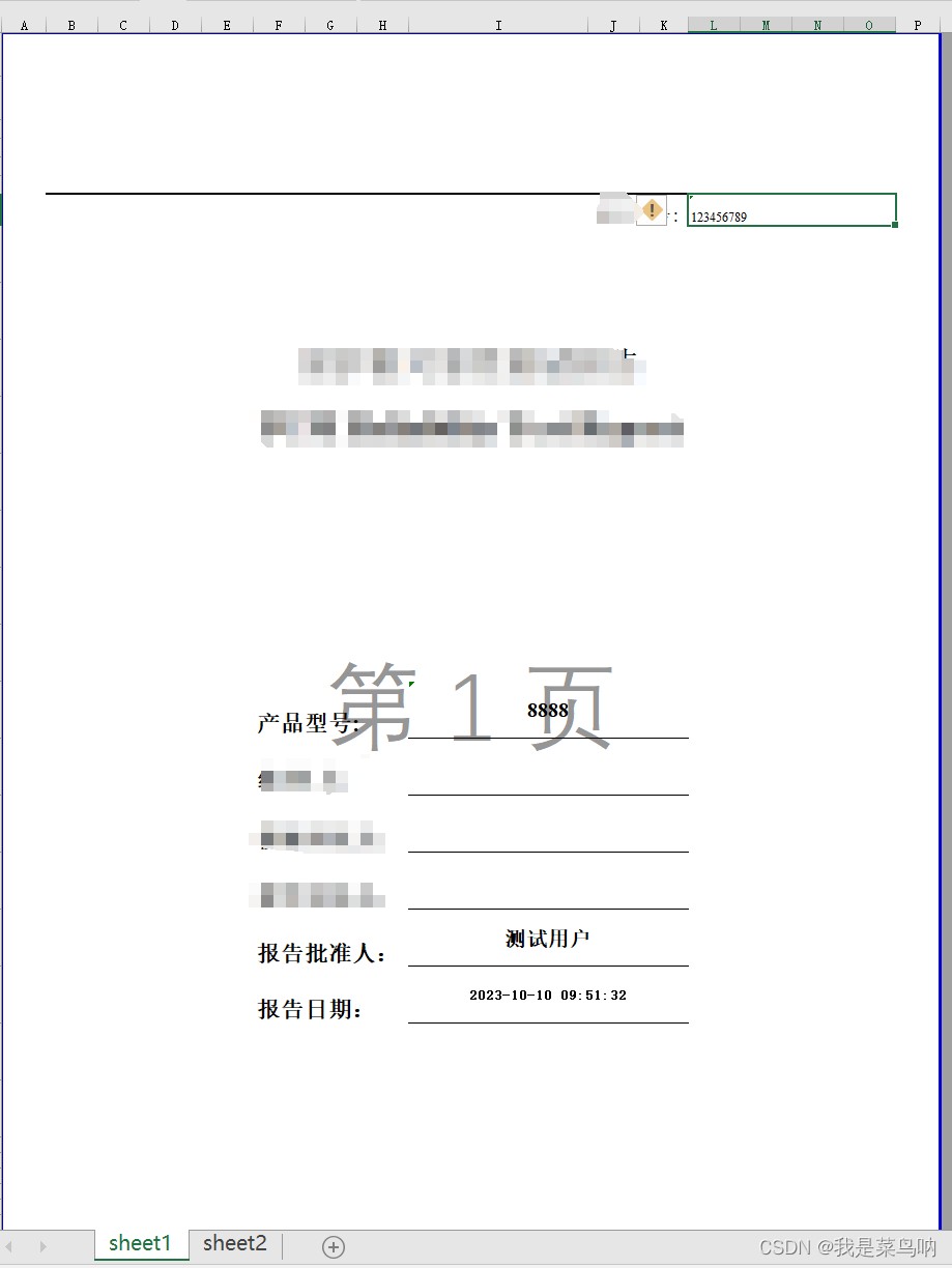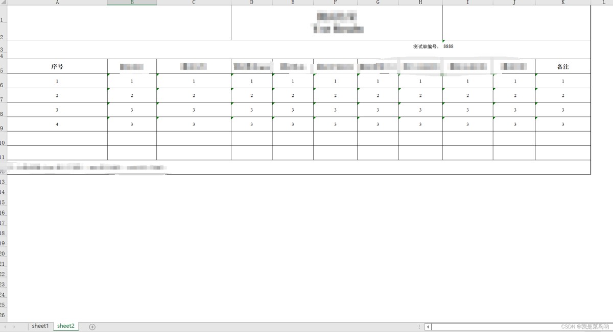 先来一个基础的sheet1的写入数据,excel模板要放入指定位置或修改读取路径