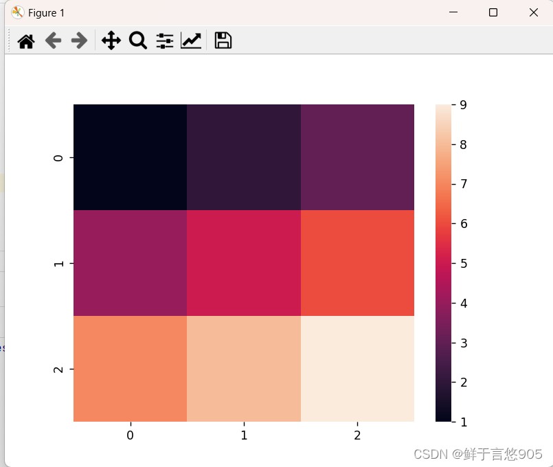 运行代码后,将会弹出一个窗口显示绘制的热力图。默认情况下,heatmap()函数将根据数据的值自动选择颜色渐变,并在图表中显示颜色条以表示值的大小。你还可以通过设置参数来自定义热力图的样式和属性,例如调整颜色映射、添加标签、设置标题等。具体的参数设置可以参考seaborn的官方文档。