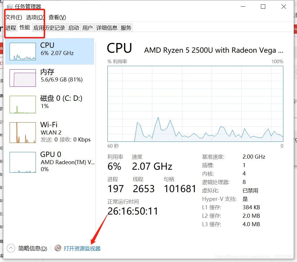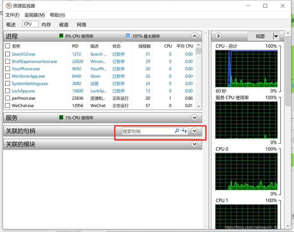 如图,打开资源监视器