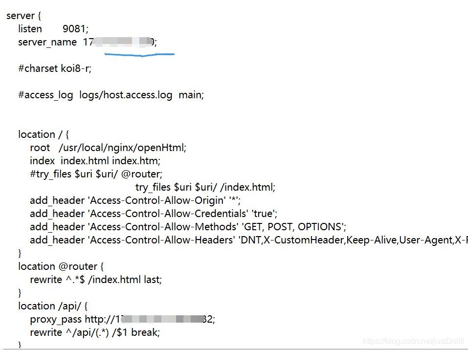 找到的nginx 的目录,替换之前的前端包。这里有几条语句需要注意: