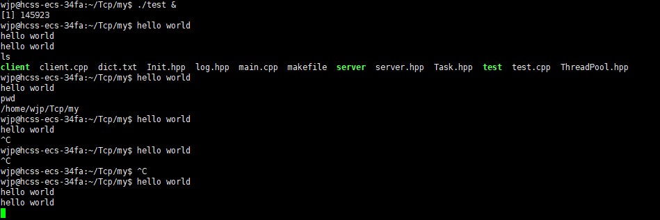 当我们将test进程变为后台进程后,因为打印是向显示器上面打印,所以会一直打印"hello world"字符串,但是输入指令还是会被执行,说明这个时候bash是前台进程,test为后台进程。