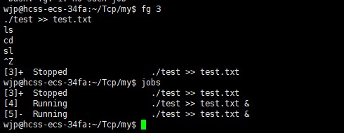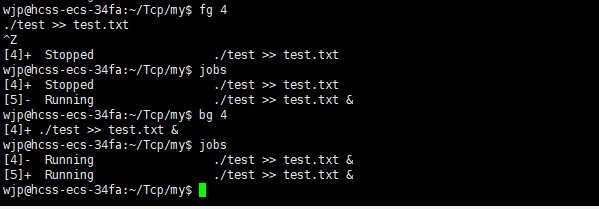 可以使用fg+任务号来时后台进程切换到前台进程,输入ctrl+z来暂停进程,ctrl+z是向进程发送了20号信号。