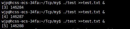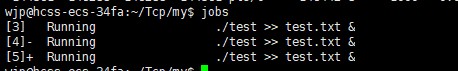 向创建一个test后台进程,然后创建3个sleep后台进程