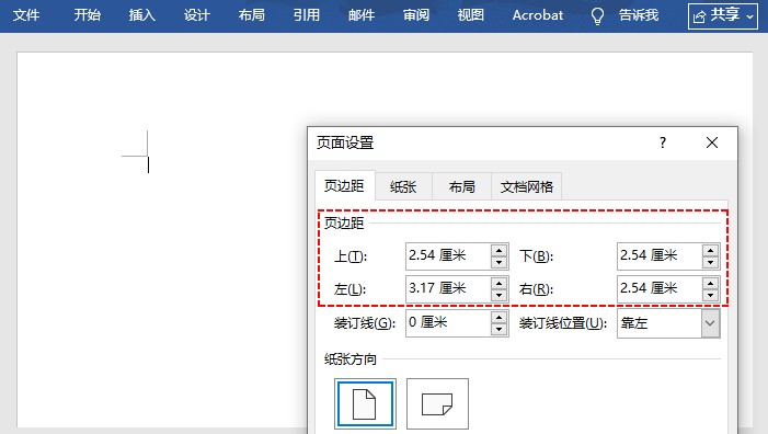设置页边距:上、下、左、右