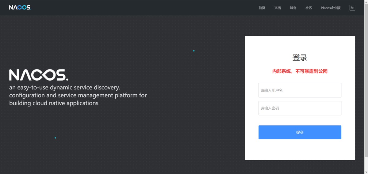 成功进入控制台,说明 nacos 服务已正常运行并成功连接 mysql 数据库。