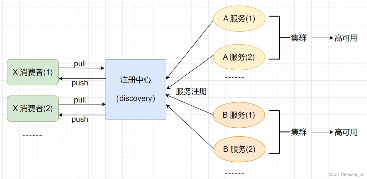 - 服务发现是注册中心将服务列表推送给调用服务的消费者 / 消费者向注册中心拉取服务列表;
