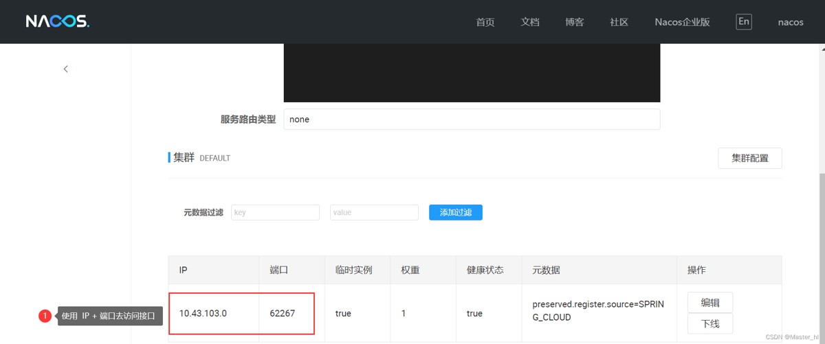 - 灰度发布:灰度发布是指先让部分用户试用新版本,而其它用户还在使用旧版本。通过nacos,可以将新版本的服务实例注册到nacos中,然后通过权重配置,让部分用户路由到新的服务实例上。(也可以通过标签配合 geteway 网关规则)
