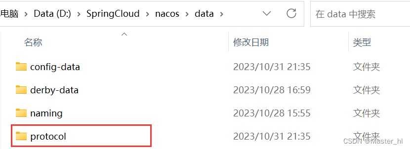 ② 删除 nacos/data 目录下的 protocol 文件夹 (非常好使)