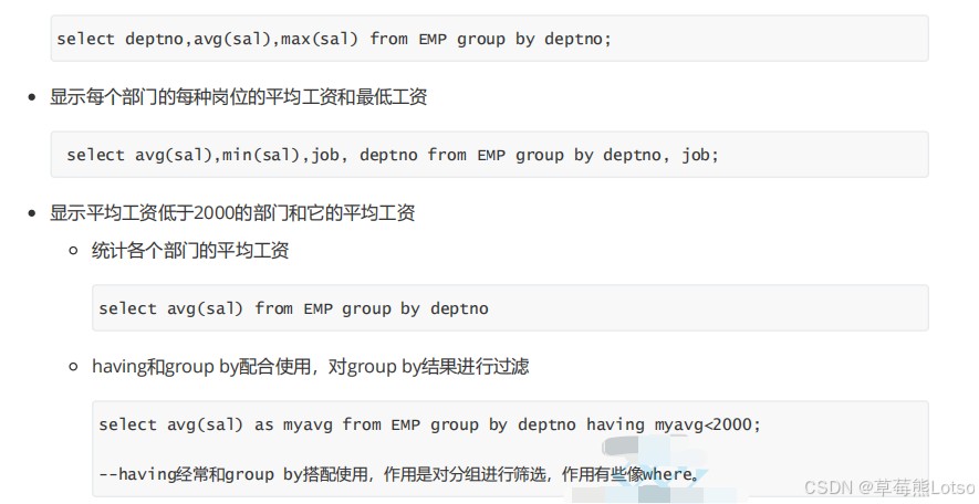 3.6 分组查询(group by + having)