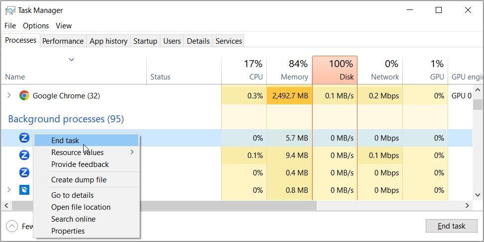 - 对你认为不必要的进程进行右键点击,并选择结束任务来停止它们。
