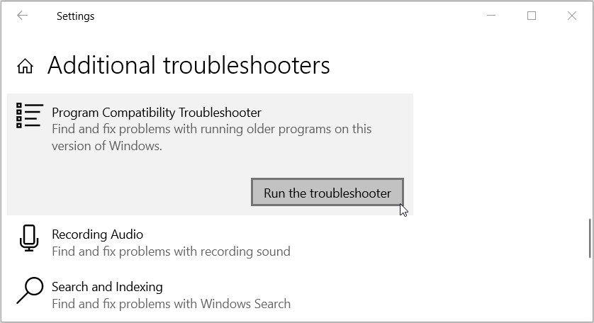 如果你怀疑错误是由兼容性问题引起的,那么兼容性故障排除工具应该会提供帮助。该工具将尝试检测并解决与程序相关的任何兼容性问题。