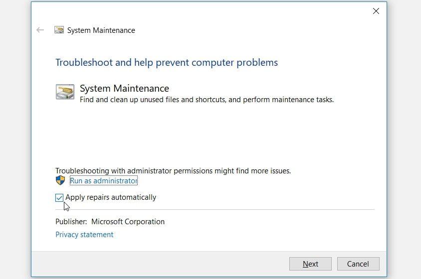 也许当前问题是由系统维护问题引起的。如果是这样的话,运行系统维护故障排除工具应该有助于解决问题。那么,让我们来指导您如何使用这个工具: