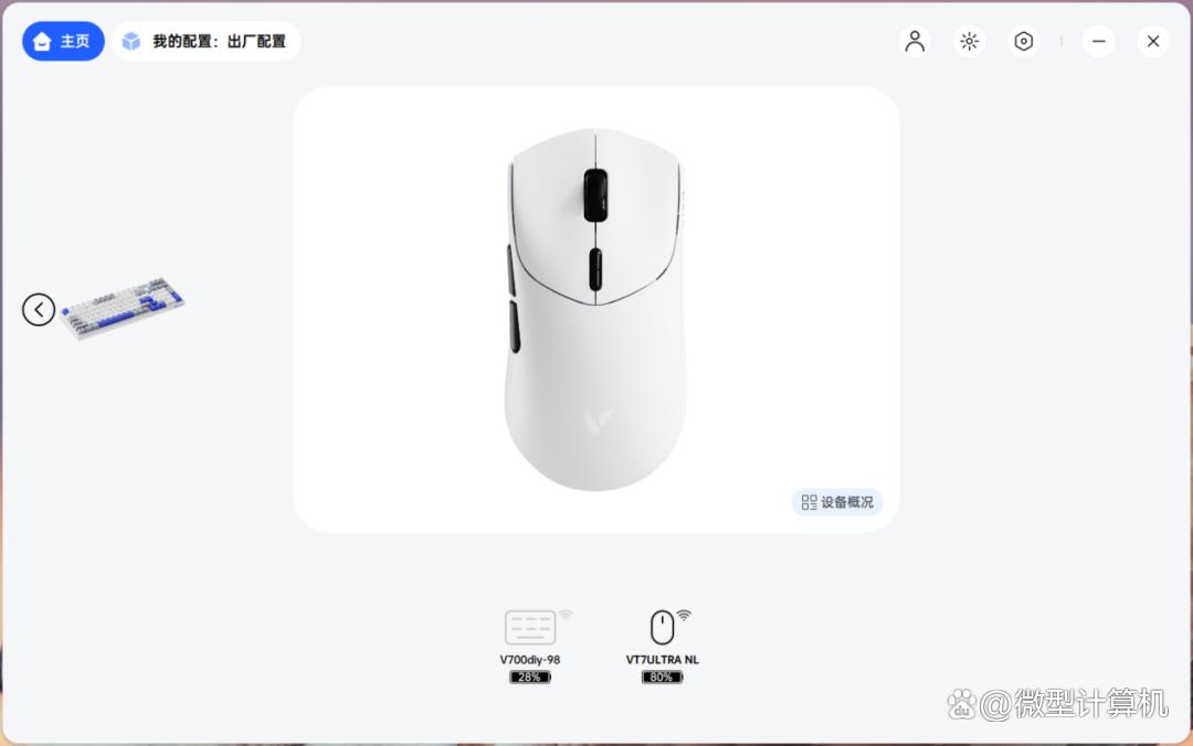 值得重点关注的是,雷柏vt7 ultra星闪版双模无线电竞鼠标支持雷柏a hub定制驱动实现个性化参数调校——进入a-hub驱动操作界面,用户可直观调取鼠标的实时运行状态与核心参数信息,涵盖按键功能映射、回报率档位、静默高度、直线修正、波纹修正、休眠时长等全方位调校选项,参数展示清晰明了,便于用户快速掌握设备状态。