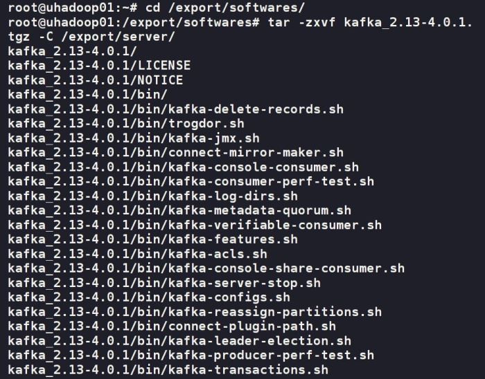 cd /export/softwares/ tar -zxvf kafka_2.13-4.0.1.tgz -c /export/server/