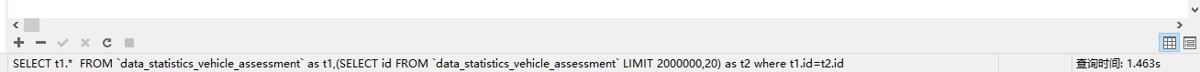 正例:先快速定位需要获取的 id 段,然后再关联: select t1.* from 表 as t1, (select id from 表 where 条件 limit 100000,20 ) as t2 where t1.id=t2.id