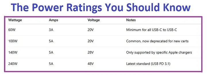 很多线——哪怕是大牌——外皮都不写瓦数。 你翻一堆 usb-c 线,根本分不出谁是 60w,谁是 240w。