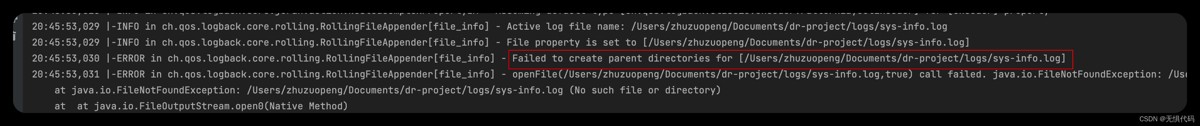 这是项目里制定了日志的目录,导致找不到这个目录才报这个错