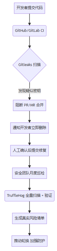 下面提供一份gitleaks+trufflehog协同部署在devops系统的业务流: