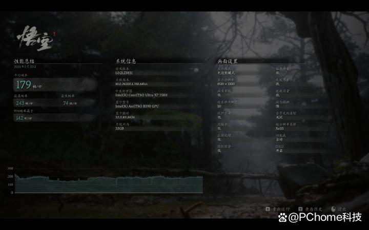 在xess 3和帧生成(mfg)的帮助下,实测在1080p分辨率、低画质预设下,《黑神话悟空》游戏的平均帧率竟然高达179fps,即使是2.5k分辨率、中画质预设下,也有86fps!你很难想象,一台集显轻薄本能够流畅的运行3a!
