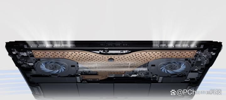 散热方面,xiaomi book pro 14采用了手机散热的思路,没有采用传统笔记本风扇+热管的方案,而是使用了超大面积的vc均热板,总面积达到10000mm2,加上高速静音风扇和三风道的内吹设计,大幅提高了散热效率。