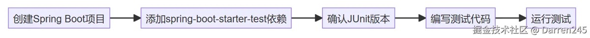 创建spring boot项目添加spring-boot-starter-test依赖确认junit版本编写测试代码运行测试