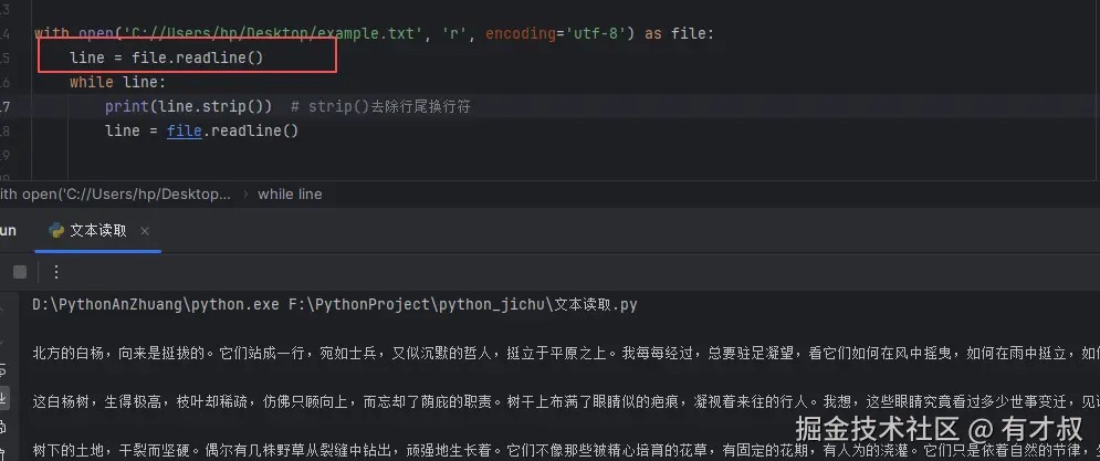 二、readline()方法 - 逐行读取的高手