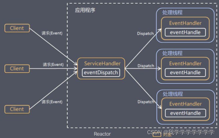 1)reactor:reactor 在一个单独的线程中运行,负责监听和分发事件,分发给适当的处理程序来对 io 事件做出反应。 它就像公司的电话接线员,它接听来自客户的电话并将线路转移到适当的联系人;