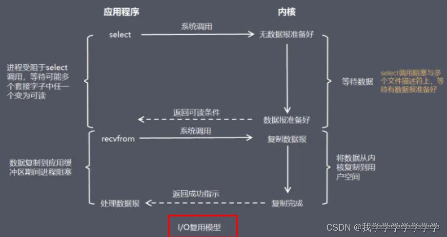 多路i/o复用模型是利用 select、poll、epoll 可以同时监察多个流的 i/o 事件的能力,在空闲的时候,会把当前线程阻塞掉,当有一个或多个流有 i/o 事件时,就从阻塞态中唤醒,于是程序就会轮询一遍所有的流(epoll 是只轮询那些真正发出了事件的流),并且只依次顺序的处理就绪的流,这种做法就避免了大量的无用操作。
