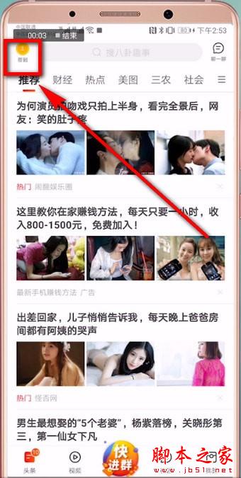 1.首先打开【微鲤看看】app,然后点击左上角【签到】图标