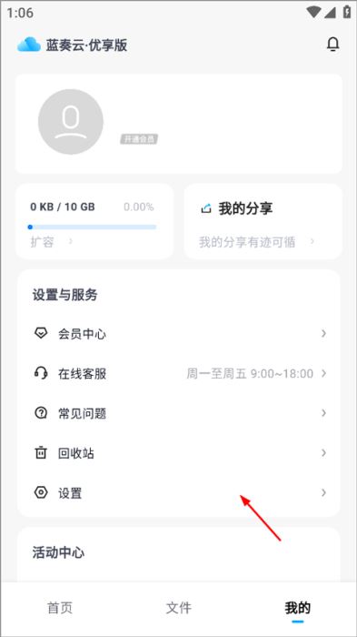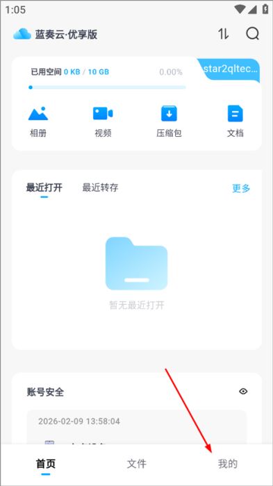 1、打开蓝奏云优享版app,点击右下角“我的”;