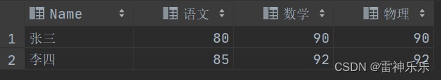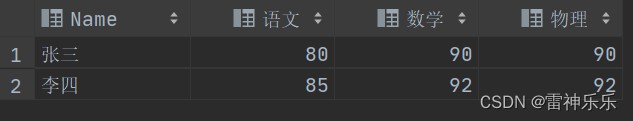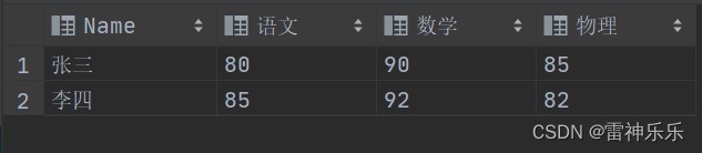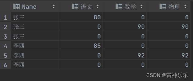 insert into cj2 values ('张三',80,90,90),('李四',85,92,92);原表: