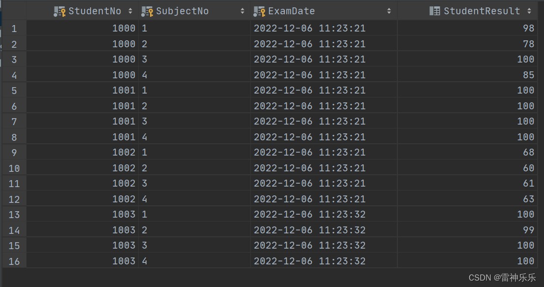 `成绩` varchar(50)