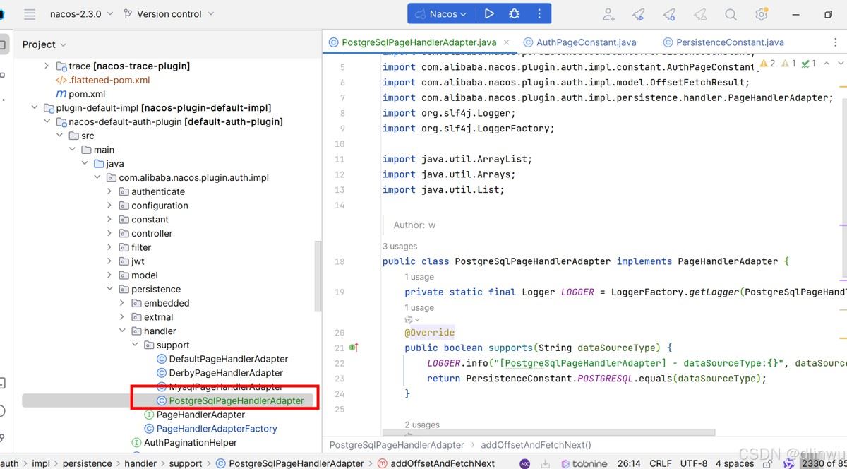 org.postgresql postgresql ${postgresql.version}2、在项目的nacos-config-plugin、nacos-persistence模块的pom.xml文件中添加如下依赖:
