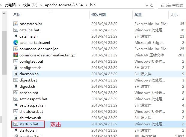 4.双击bin目录下的startup.bat脚本启动tomcat