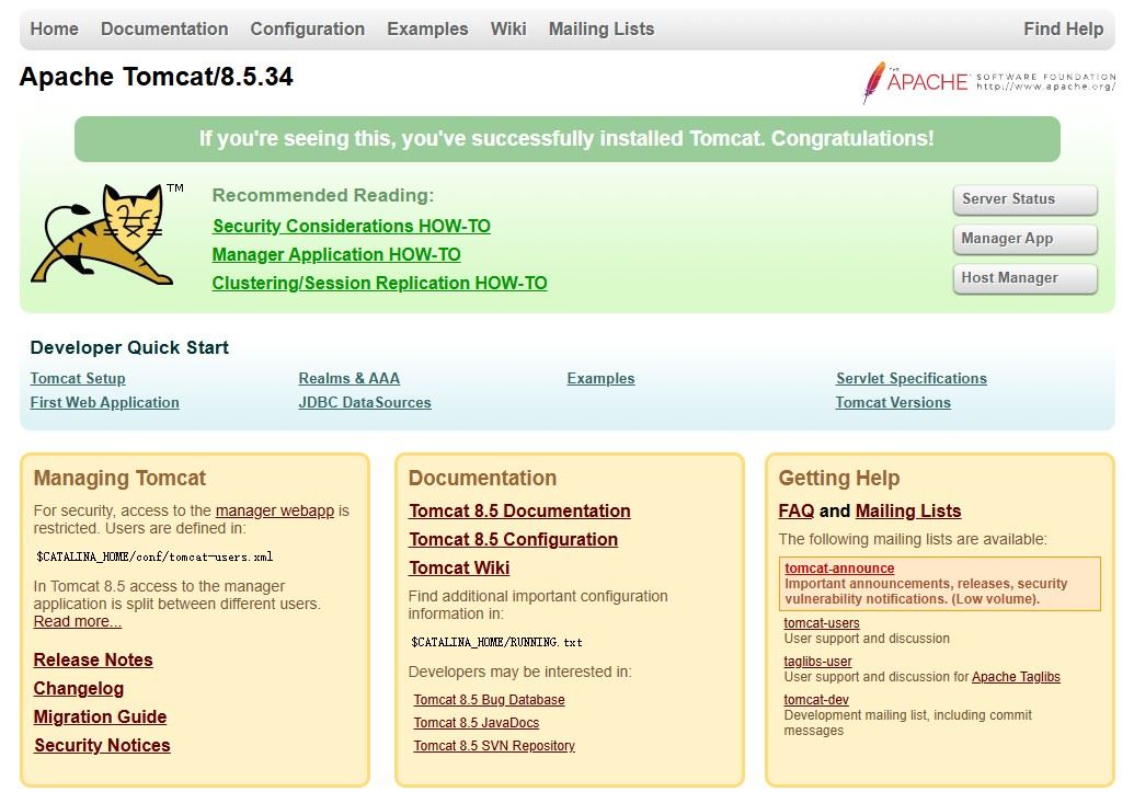 出现下面的页面,就说明tomcat服务器访问成功。
