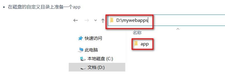 <context path="/app" docbase="d:\mywebapps\app" />启动tomcat访问测试即可