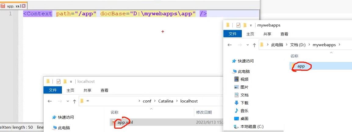 在tomcat的conf下创建catalina/localhost目录,并在该目录下准备一个app.xml文件